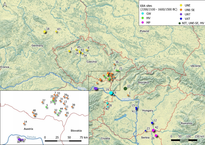Az elvégzett biológiai távolság elemzések – a népességek közötti genetikai rokonsággal korreláló alaktani hasonlóság vagy különbség mértéke – a mai Csehországtól Szerbiáig rendelkezésre álló bronzkori közösségek kraniometriai (a koponya mérhető jellegei) adatainak felhasználásával készültek. Ennek során komplex statisztikai összehasonlításokkal 442 kora bronzkori csontvázas temetkezés régészeti és biológiai antropológiai adatait elemezték, összevetve azokat további 100 a korábbi, Kr. e. 2800 – 2100 közötti időszakból származó egyén adataival is.